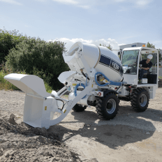 Visibilidad, maniobrabilidad y mezcla de alta calidad gracias al doble tambor en forma de cono truncado, con sistema de mezcla de doble tornillo y fondo convexo. Cargador fijo con portilla de descarga automática, mediante la cual se optimiza la carga de material y se evitan las salpicaduras al introducir los componentes en el tambor.