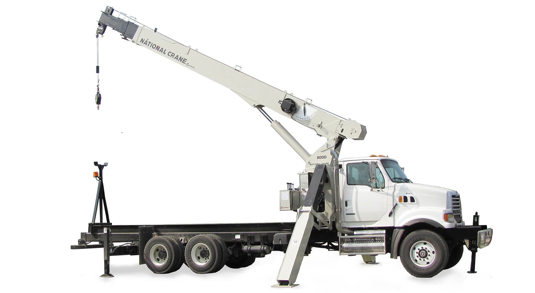 Con una capacidad de 23 T, la 800D ofrece cuatro combinaciones básicas de pluma y plumín. Las longitudes de la pluma incluyen: 51 pies, 90 pies y 100 pies. El plumín de 25 pies a 44 pies se puede usar con las longitudes de pluma de 90 pies y 100 pies. La 800D está disponible en tres configuraciones: montaje estándar detrás de la cabina, montaje trasero y montaje en tractor.