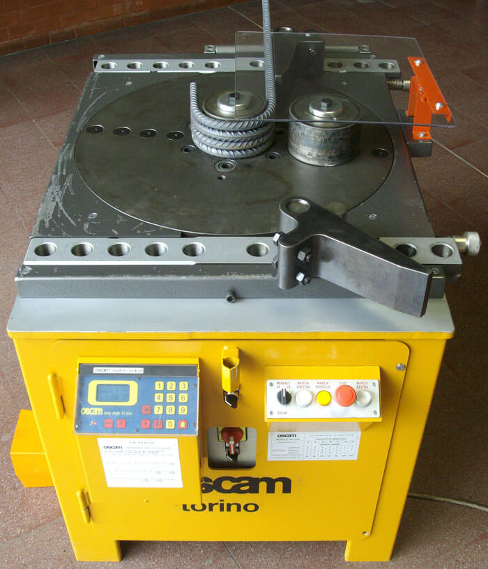 La serie completa de pernos, casquillos y rodillos suministrada de serie, permite efectuar todos los doblados y ángulos deseados, así como todo tipo de forma. La máquina está equipada con pedal para mando a distancia.