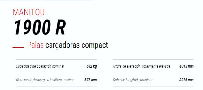 Aproveche el rendimiento de la minicargador 1900 R para realizar con eficacia sus operaciones de manejo en su sitio de construcción o trabajo agrícola. Esta cargadora muy robusta hace que la maniobrabilidad todoterreno parezca fácil en entornos uniformes, embarrados o accidentados. Con una gran capacidad de elevación, la minicargador 1900 R es capaz de transportar, levantar y mover sus materiales de todo tipo, incluidos los más engorrosos y voluminosos. Debido a su capacidad multifunción, este cargador es una solución de referencia versátil para constructores y agricultores que deben realizar varias operaciones todos los días.