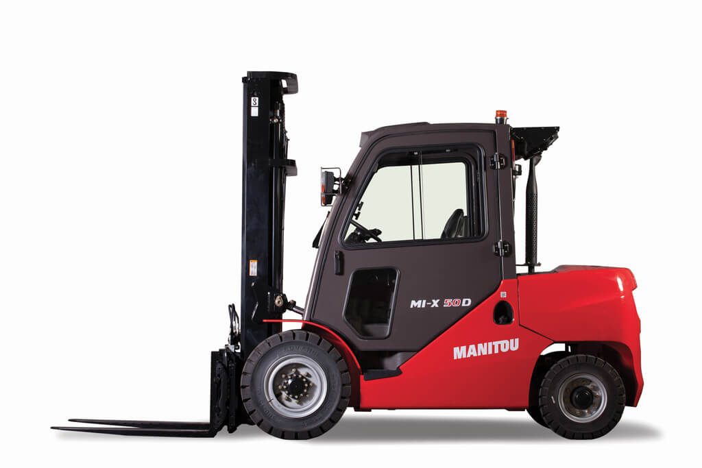 El montacargas MI-X 50 D es una magnífica inversión para actividades que impliquen la manutención de cargas de hasta 5 toneladas sobre suelos estabilizados en interiores y también en exteriores. Este modelo está disponible con cabina abierta o cerrada y con una gran selección de mástiles y neumáticos adaptados a sus necesidades y limitaciones. Los conductores apreciarán su confort: columna de dirección y asiento ajustable, techo calado, mandos sencillos, tablero de mandos muy claro, fácil acceso al puesto de conducción, visibilidad en cabina y pedal de «inching» para aproximarse a la carga suavemente. Los técnicos apreciarán su facilidad de acceso a los puntos de mantenimiento y la solidez general de esta carretilla.