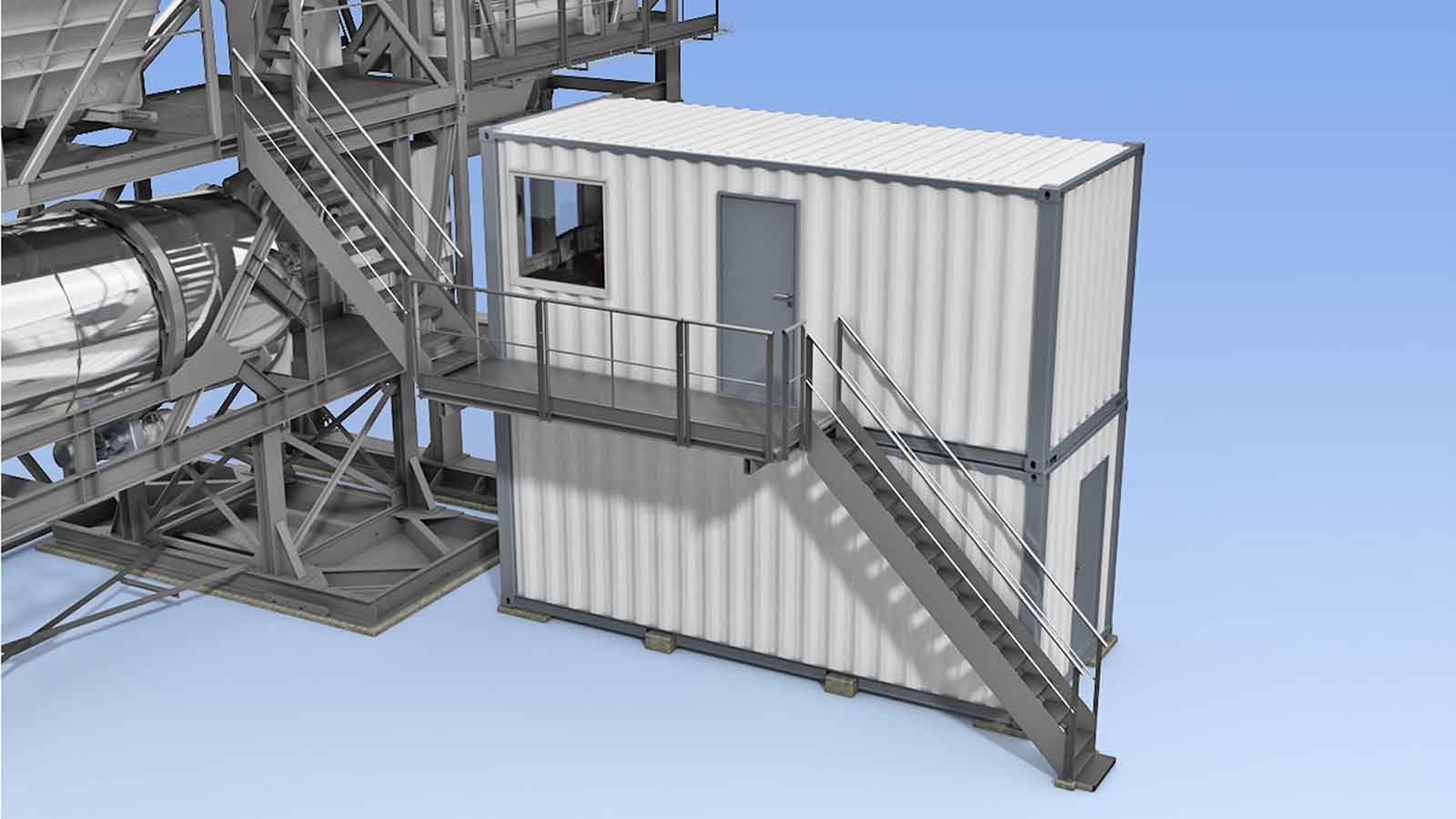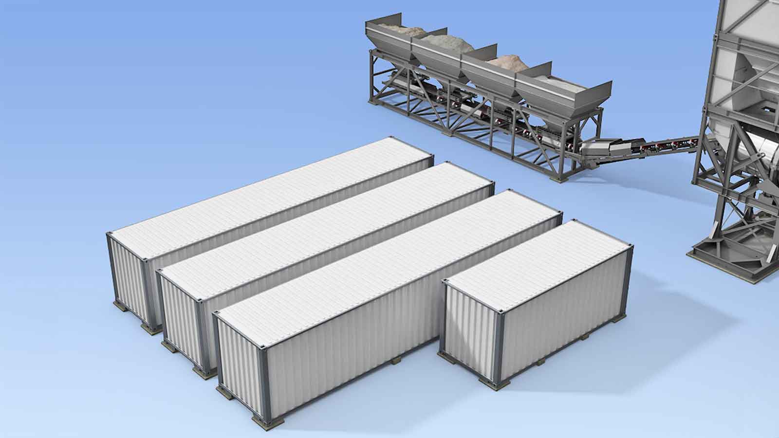 Los componentes clave, incluso las unidades del filtro y la secadora y los módulos de la torre de mezclado, utilizan carcasas que también sirven como contenedores de transporte certificados. Estos componentes están construidos en unidades de 20 o 40 pies, el tamaño de contenedor más común. Cuando sea momento de movilizar los componentes, solo es necesario cargarlos dentro del vehículo de transporte. La planta entera cabe en 10 unidades.