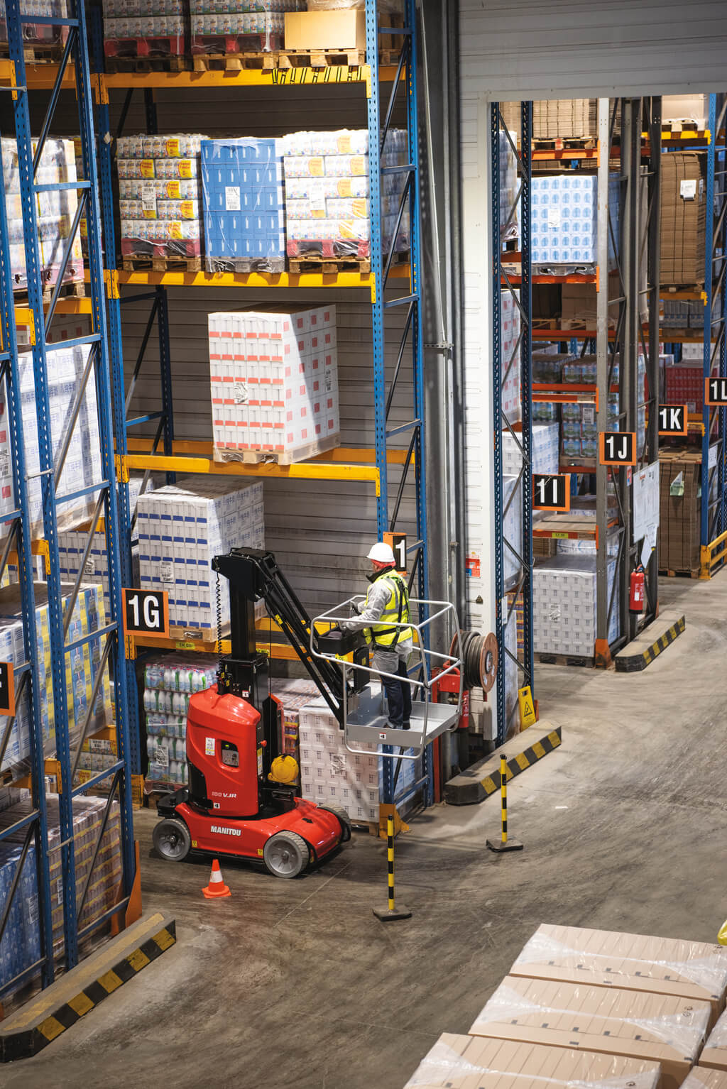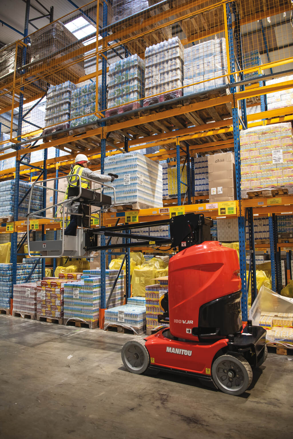 Compruebe el rendimiento del 100 VJR para sus operaciones de manipulación aérea. Compacto y fácil de manejar, este modelo consta de un mástil telescópico vertical, un motor eléctrico y una cesta perforada que satisface todas sus necesidades industriales. El tamaño compacto de la máquina permite un fácil desplazamiento a través de la mayoría de las puertas industriales. La 100 VJR es ideal para trabajar en múltiples aplicaciones, gracias a las ventajosas características de este diseño de mástil vertical.